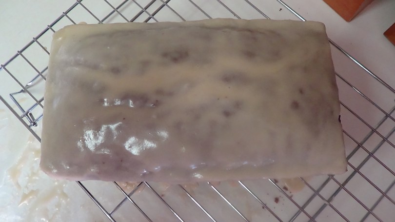 Gently pour chai frosting over the top of the bread.