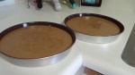- Pour the batter into cake pans; I used two greased 9″ cake pans.