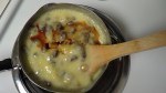 - Stir continuously on medium heat until it thickens. This takes 10 to 15 minutes.