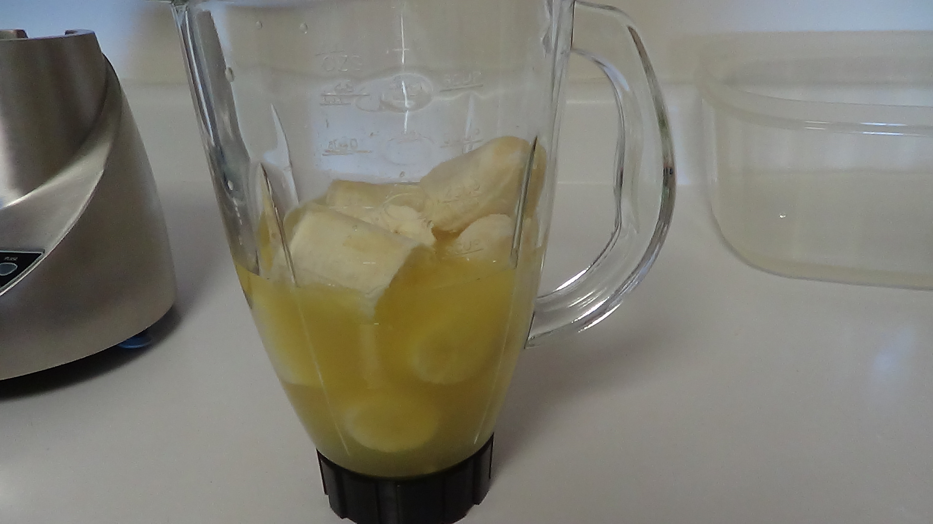 Place 1/1/2 cups of pineapple juice into a blender.