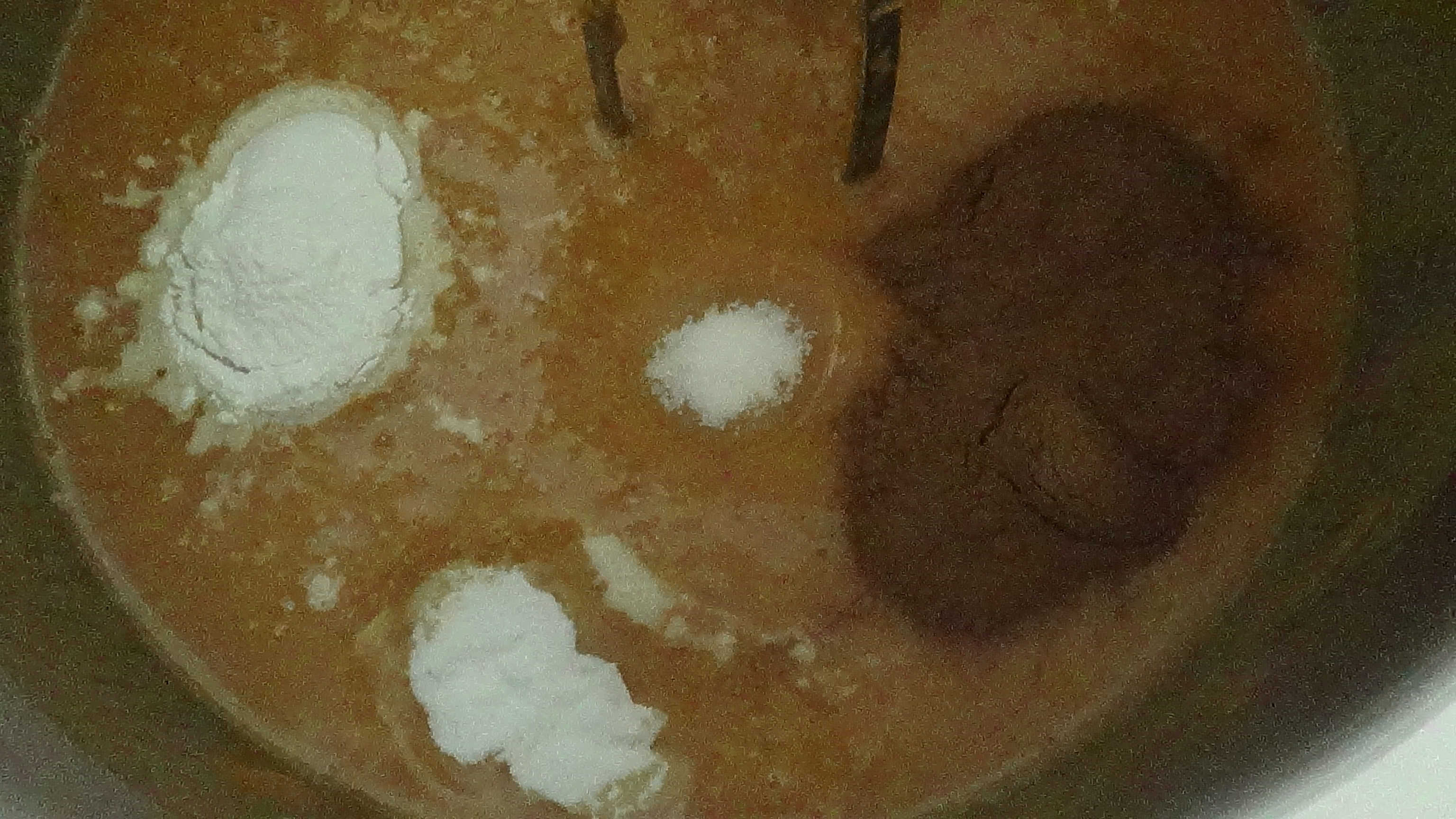 Then add 2 teaspoons baking powder, 1 teaspoon baking soda, 1/2 teaspoon salt, and 2 teaspoons cinnamon.