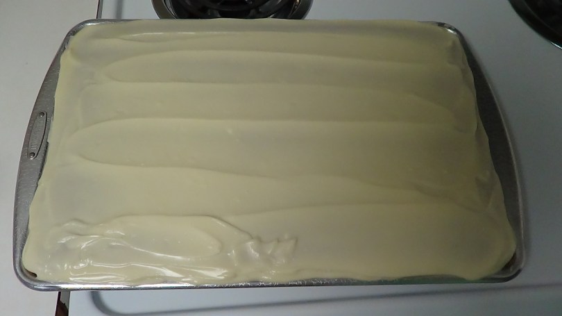 Spread the frosting on top of the cooled bars with a butter knife or off-set spatula.