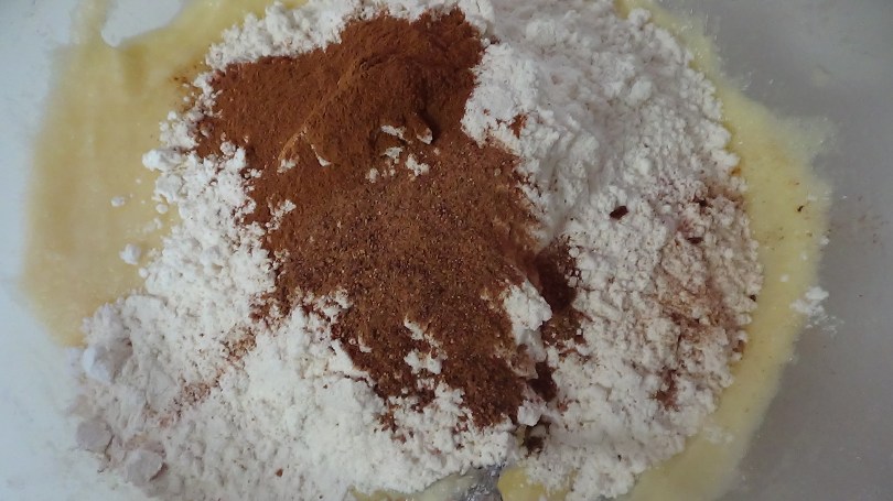 Spice time! 1 1/2 teaspoons of cinnamon and 1 teaspoon of ground nutmeg.