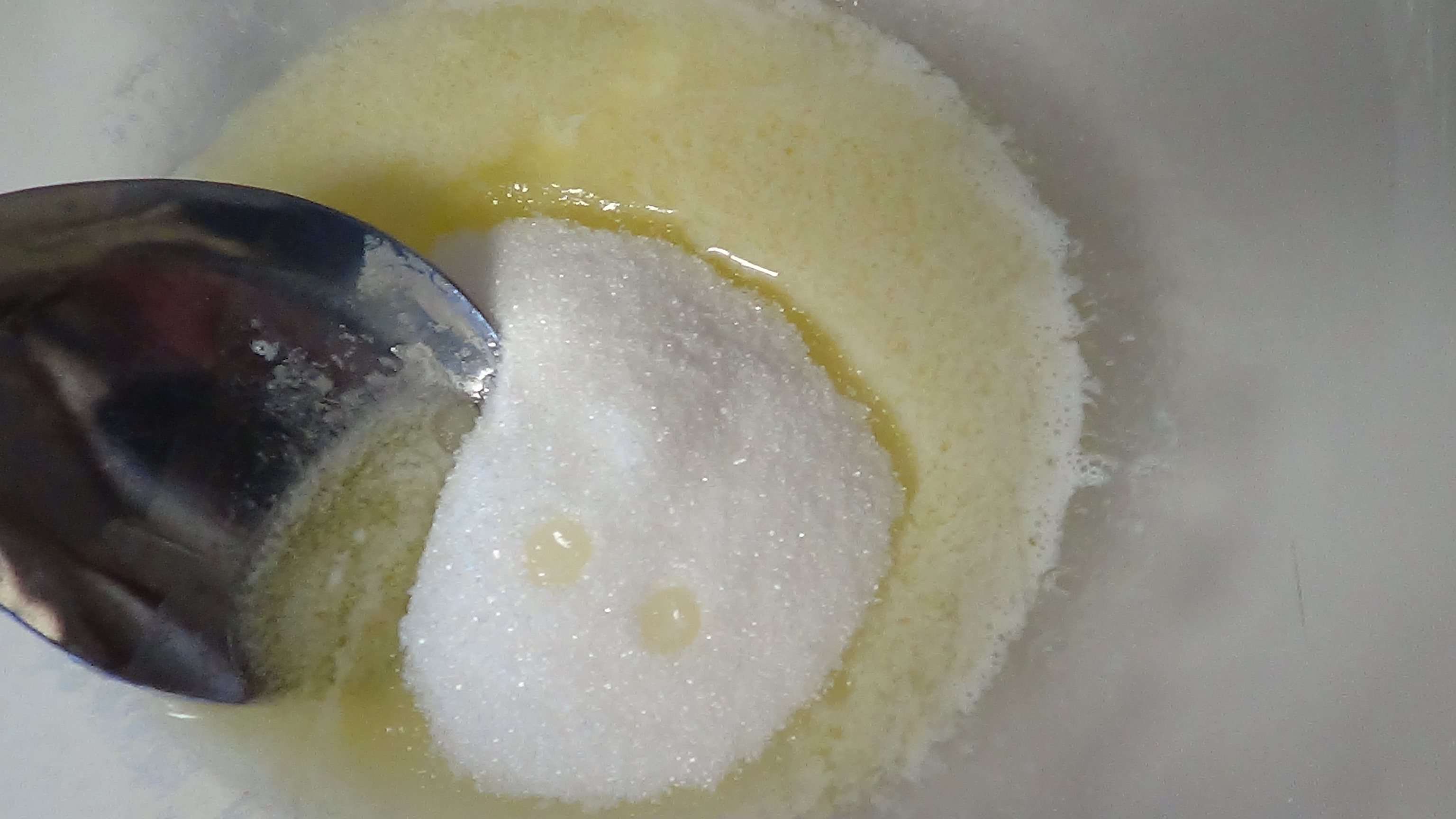 Add 1/4 cup of sugar to the butter and mix.