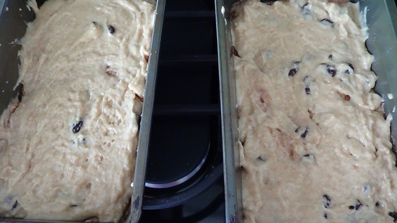 Add the rest of the mixture on top of the two loaves.