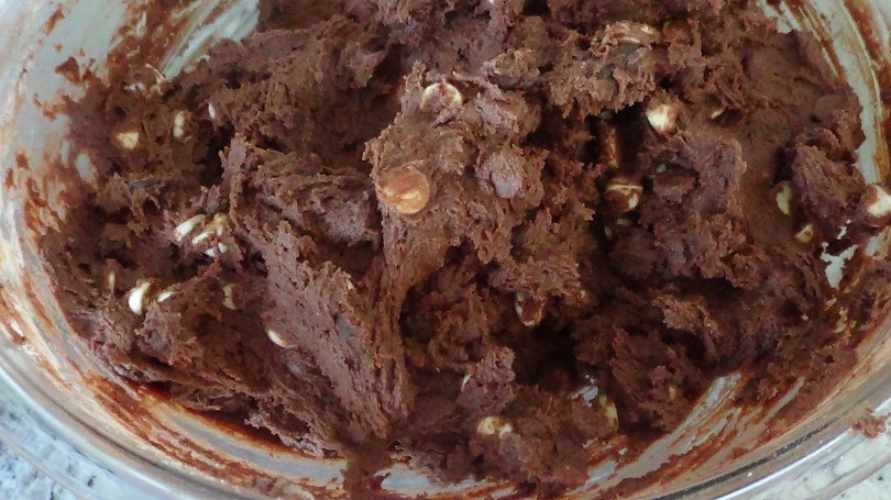 Gently fold the chips into the brown batter.